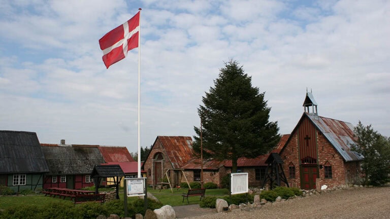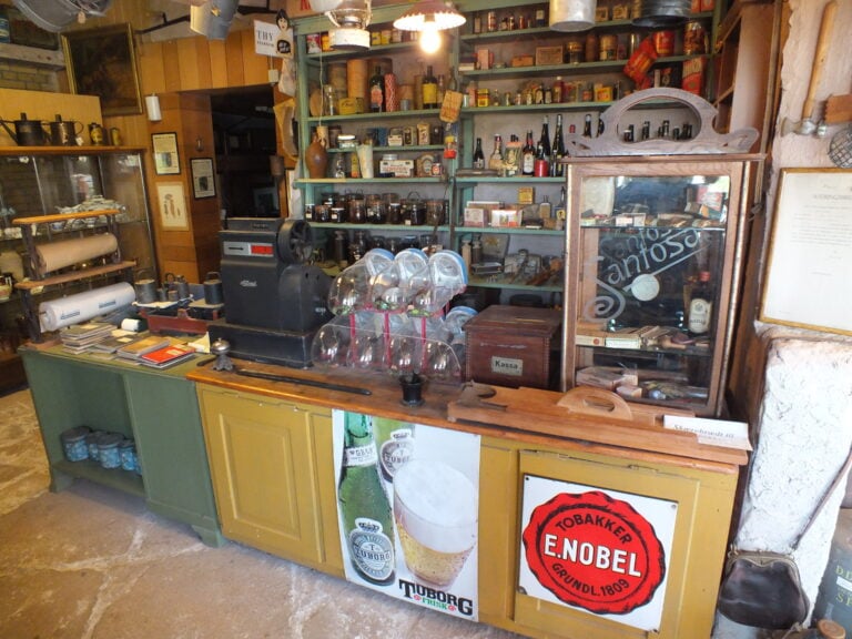 Vi spiser frokost på en nærliggende restaurant, inden vi kører videre til Wellings Landsbymuseum, der er bygget af en enkelt mand – Søren Welling. Det snørklede og skæve museum tager os med tilbage i tiden til en landsby, som den kunne have set ud i år 1900. Vi kan besøge skolestuen, posthuset, købmanden, kirken og et væld af andre rum med originale effekter. I laden og på værkstederne findes der samlinger af landbrugsmaskiner og håndværksredskaber. Ved ankomst til museet får vi en fortælling om stedet, mens vi nyder et stykke kage og en kop kaffe i krostuen. Herefter er der tid til at gå rundt på egen hånd, inden vi kører tilbage til Fyn ud på eftermiddagen.